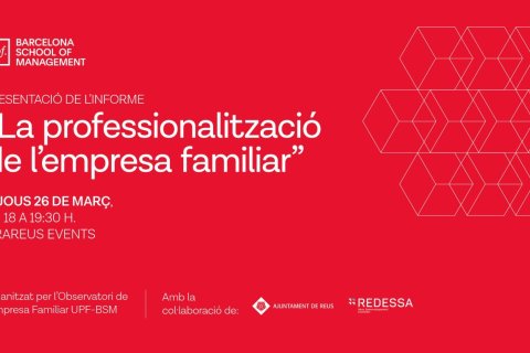 Les instal·lacions de firaReus Events acolliran el proper 26 de març, de 18 a 19:30 h, la presentació de l’estudi sobre la professionalització de l’empresa familiar impulsat per l’Observatori de l’Empresa Familiar UPF-BSM. L’acte compta amb el suport de REDESSA i l’Ajuntament de Reus.
