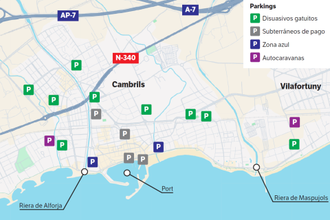 Cambrils también estrenó en 2025 un parking de autocaravanas, el del Corralet 2, con 80 plazas, para terminar con la ocupación de la primera línea de mar por parte de estos vehículos. Y hay otro similar, con 100 plazas, en Miguel Hidalgo. En las calles más próximas a la playa, el Ayuntamiento pintó plazas de aparcamiento con las dimensiones justas para coches, para que las autocaravanas no se pongan.